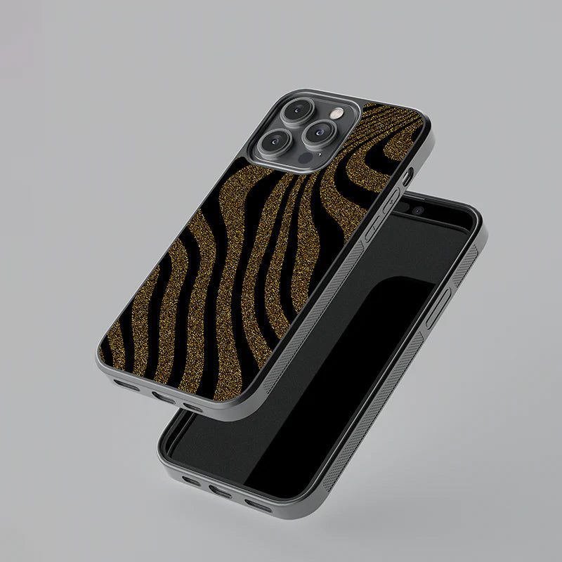 Luxury Black & Gold Glitter Wave iPhone Case – Slim Shockproof Designer Cover